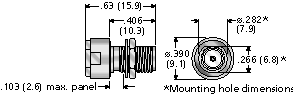 M39012/83 connectors are straight SMA bulkhead jacks for semi-rigid cable, with captive contacts and solder-clamp cable attachment. They have passivated stainless-steel bodies (gold-plated where soldered to cable), and gold-plated contacts. |